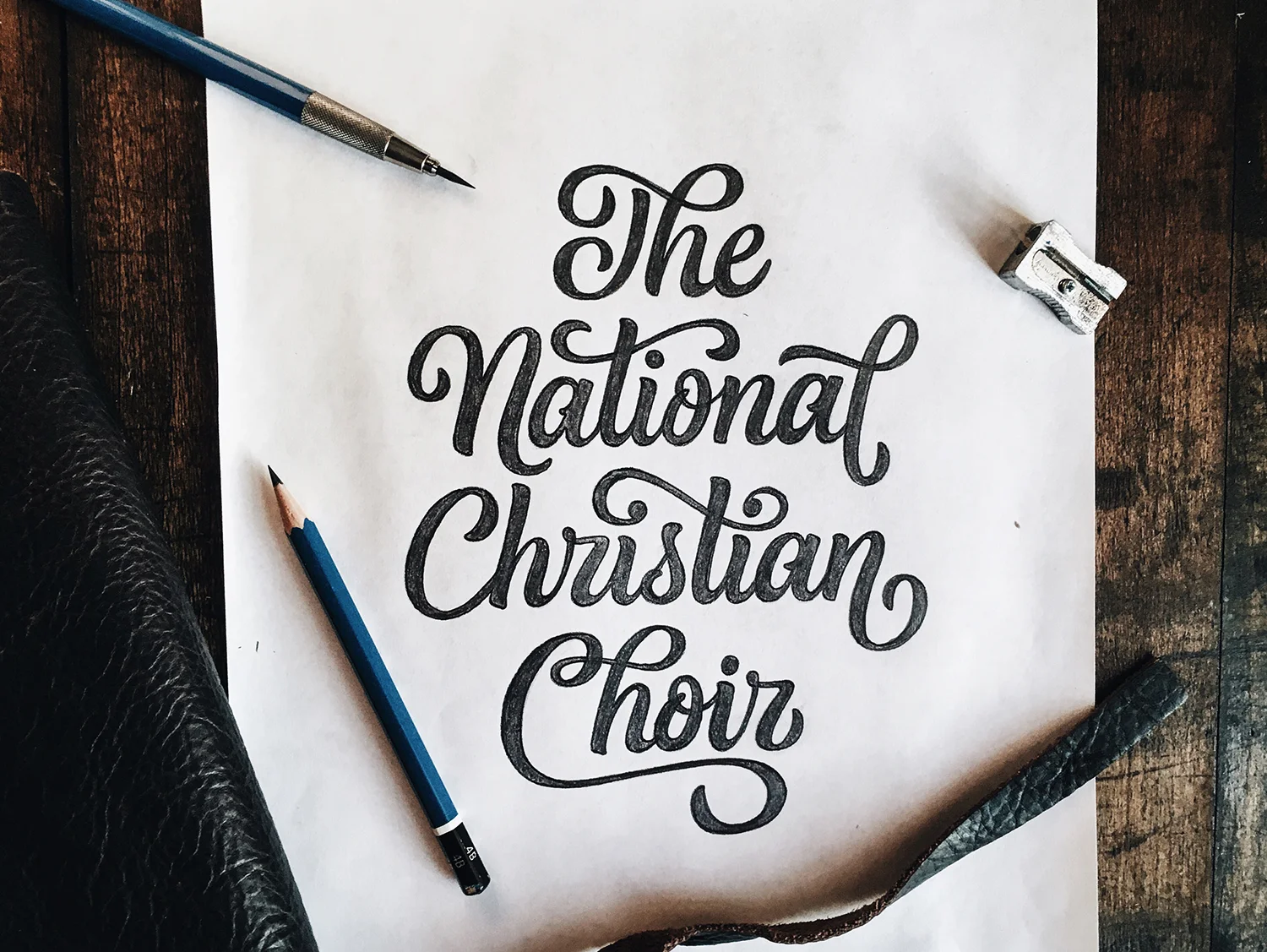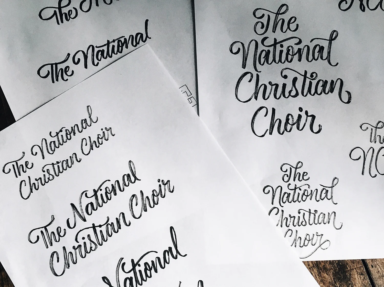 I decided to use several variations of my brush pen calligraphy to create a whimsical script style. A free flowing, hand written foundation adds a genuine elegance that will allow The NCC's audience to be able to directly relate to the choir.